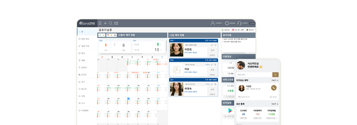 예약 후 체계적인 고객관리를 원한다면 글로리원을 시작해 보세요.